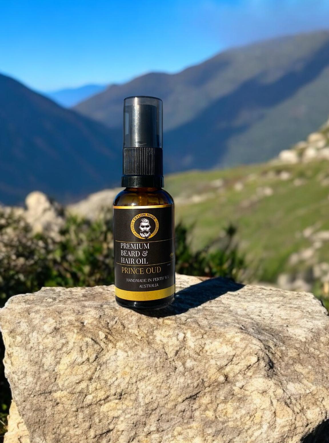 Premium hand crafted beard oil for men. Energy boosting and stress free natural oud fragrance with natural facial hair imgredients.